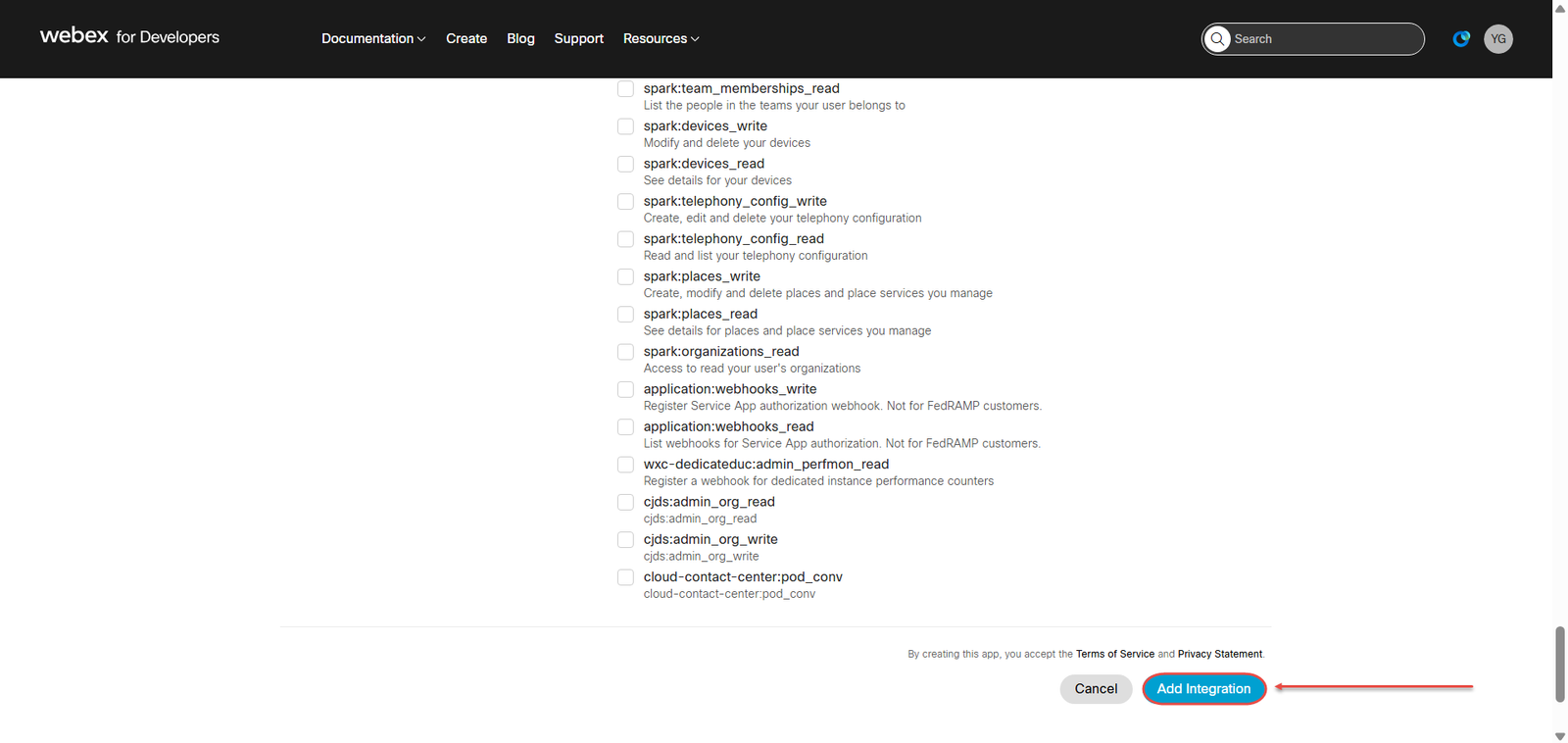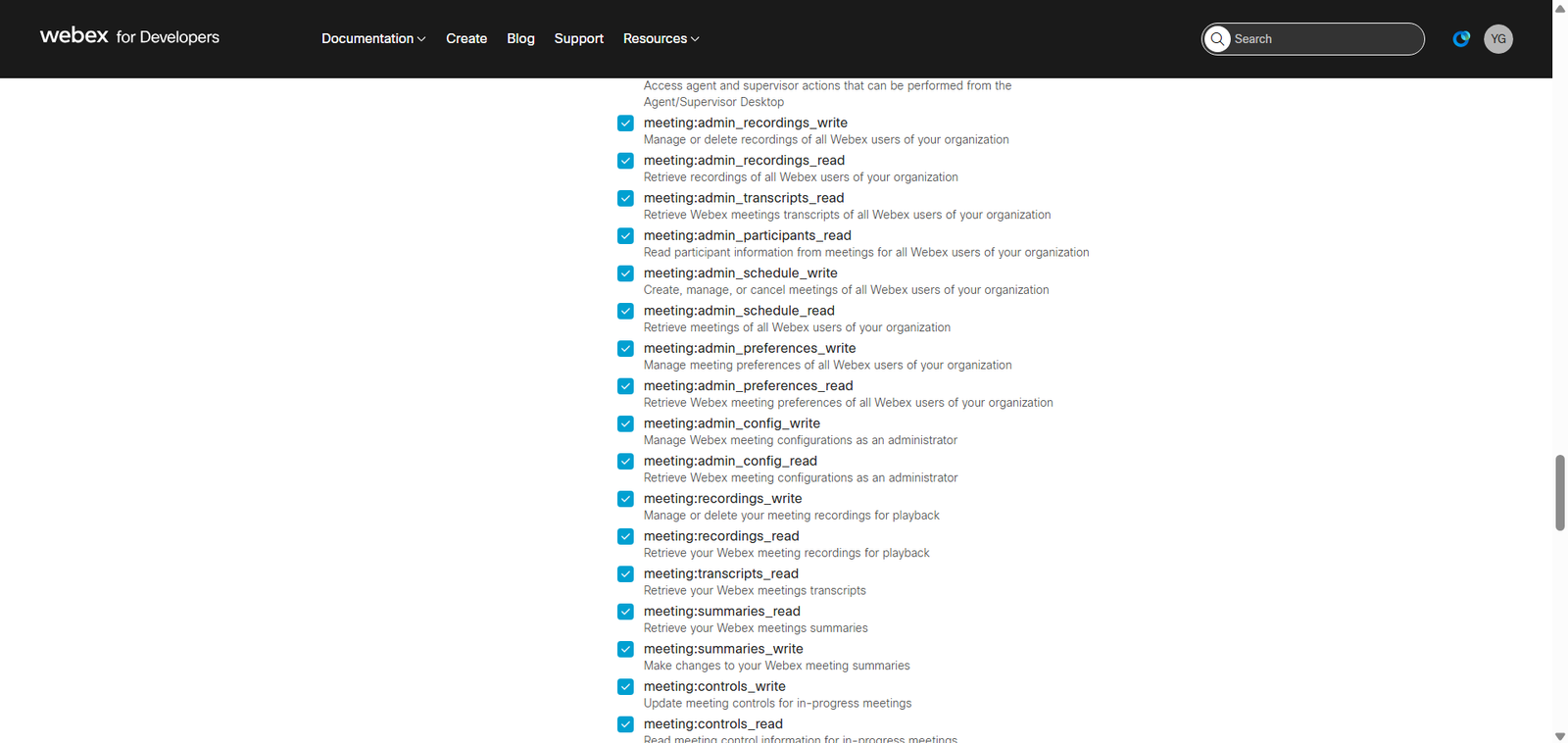 Next, scroll down and select all Meetings Scopes. (Scopes that start with meeting:).