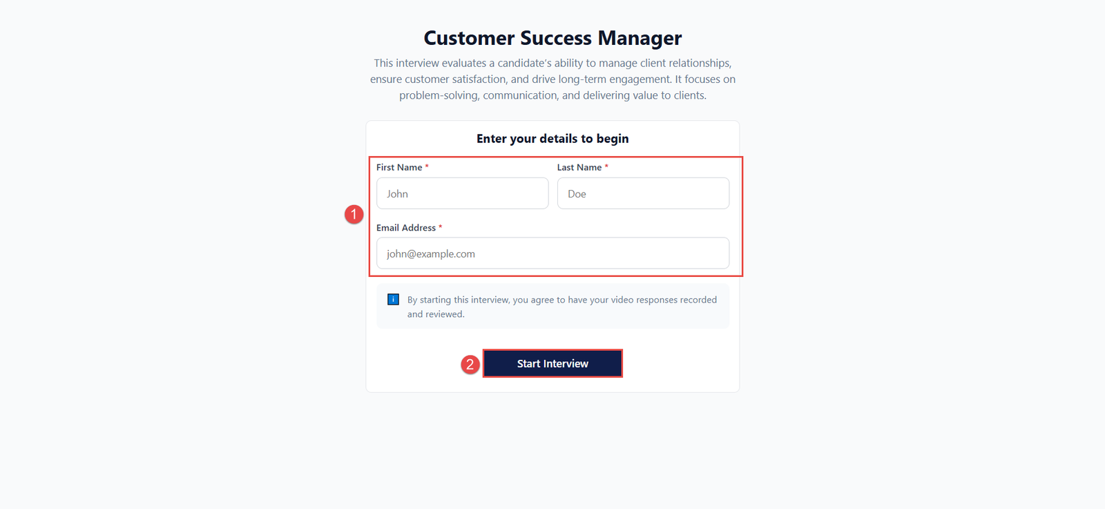 Candidates can also access and complete the interview using a direct link. Recruiters may share this link to provide quick and easy access for new candidates.