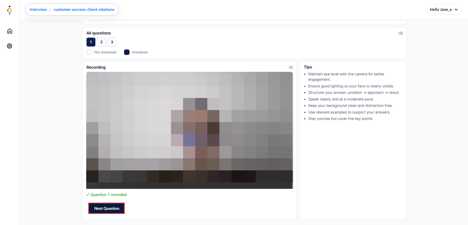 Once the candidate selects Stop Recording, they can proceed to the next question by clicking the Next Question button.