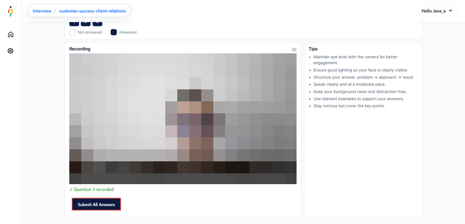 Once all questions have been answered, the candidate can select Submit All Answers to complete the interview.