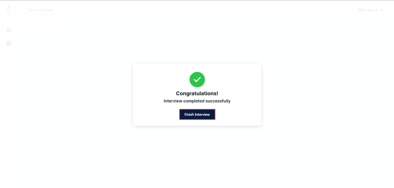By selecting Finish Interview, the interview session will be closed, and the candidate will be logged out of the application.