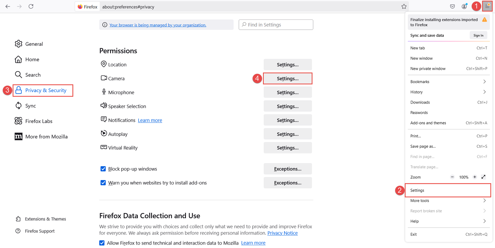 - Turn access to the camera on for the browser you use to take the exam.