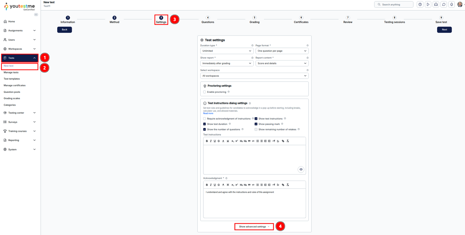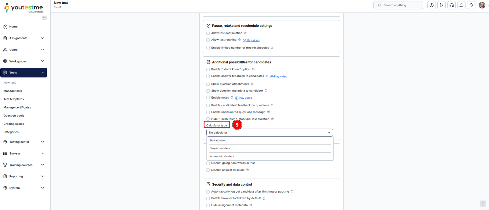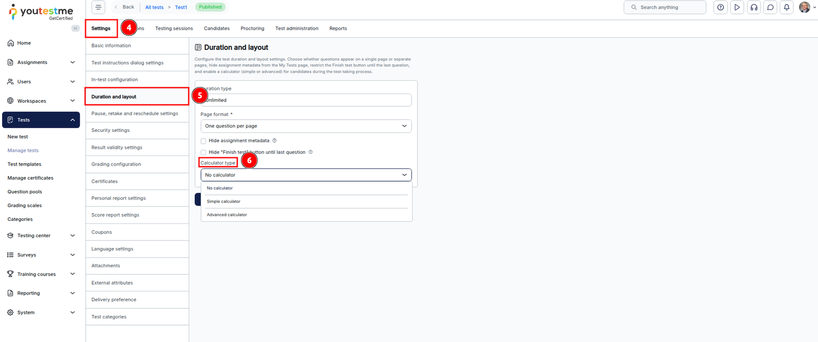 You can enable the calculator and choose its type while creating a test using the test wizard. To do so: