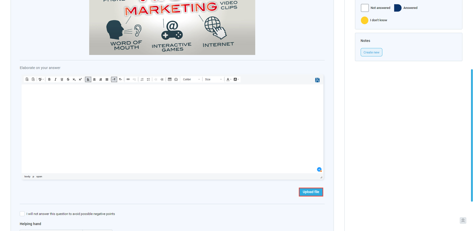 To upload an attachment, the candidate should click the Upload file option and locate and select the file from their computer.
