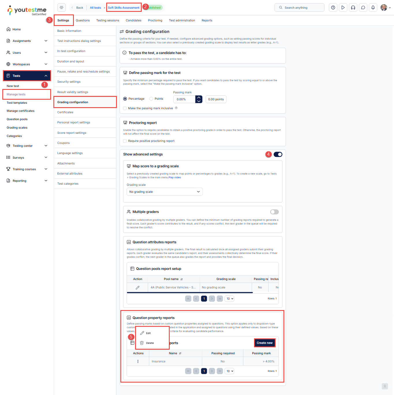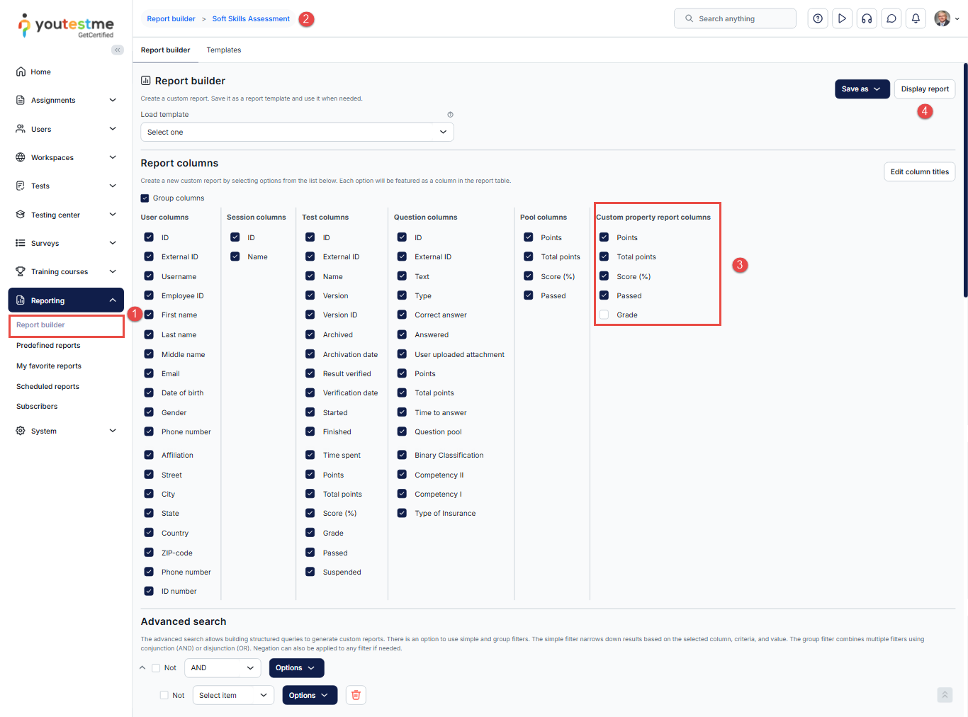 This article explains how to create and include custom question properties in your test reports using the Report Builder. Custom question properties allow you to filter, grade, and evaluate candidate performance based on specific attributes assigned to individual questions. For a general overview of how to use the Report Builder, please refer to this article.