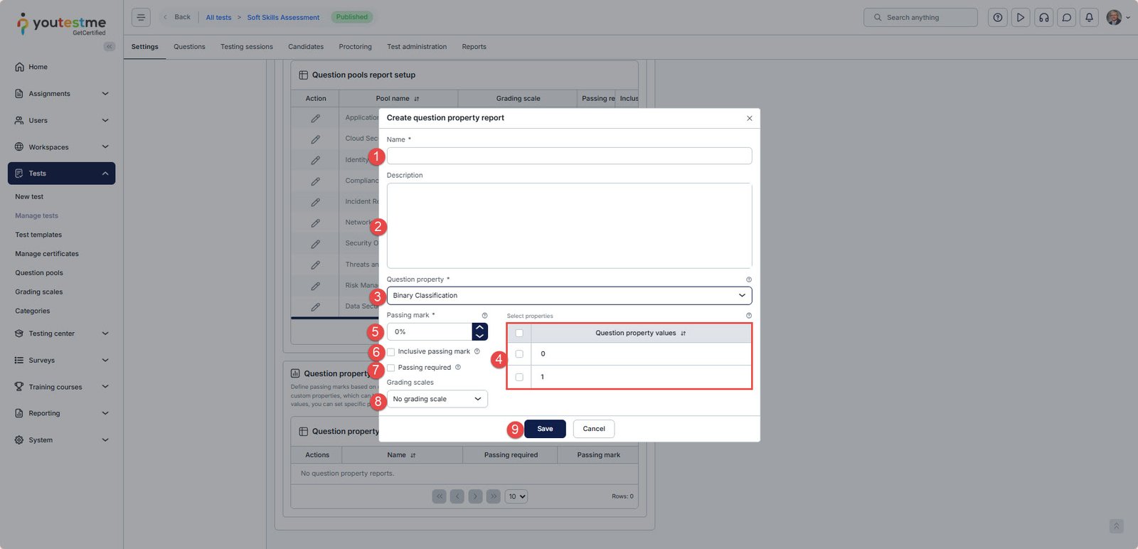 Note: This property must be assigned to questions within the test. For more details, refer to the related help article.Choose Property Values