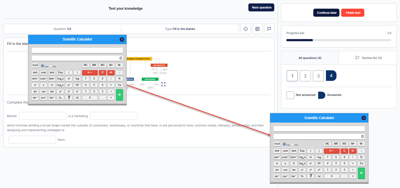 You can use your mouse to drag and reposition the calculator anywhere within the exam tab for your convenience.