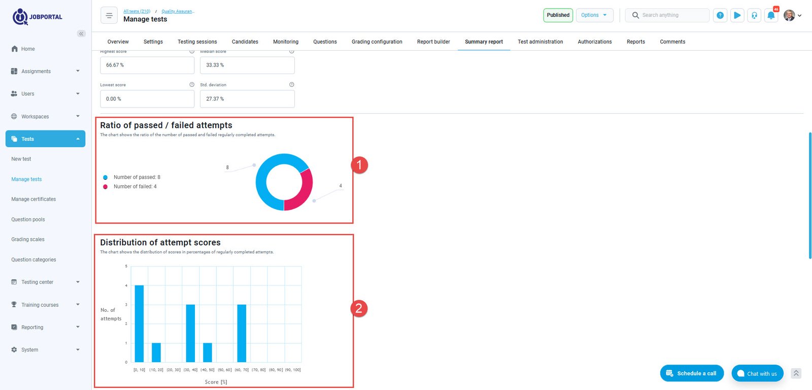 In the Attempts summary report, you gain access to comprehensive global statistics related to test attempts, including: