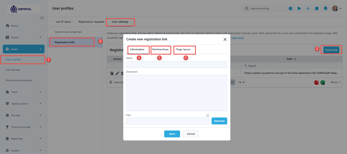 for more detailed instructions, on how to create registration links please visit this article How to Create and Add Users in the System