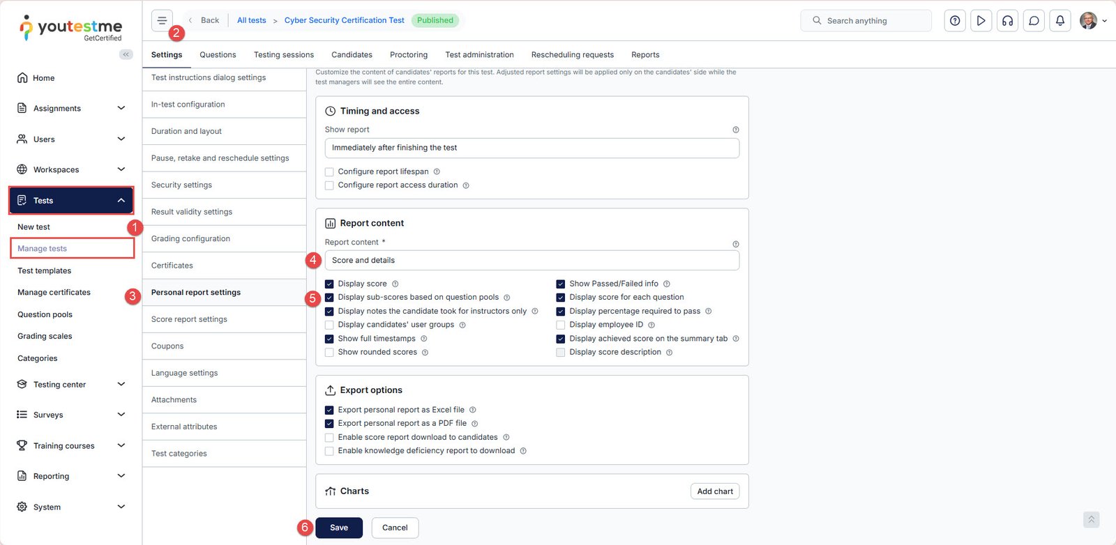 - Locate the Report content and enable the Score and details option.