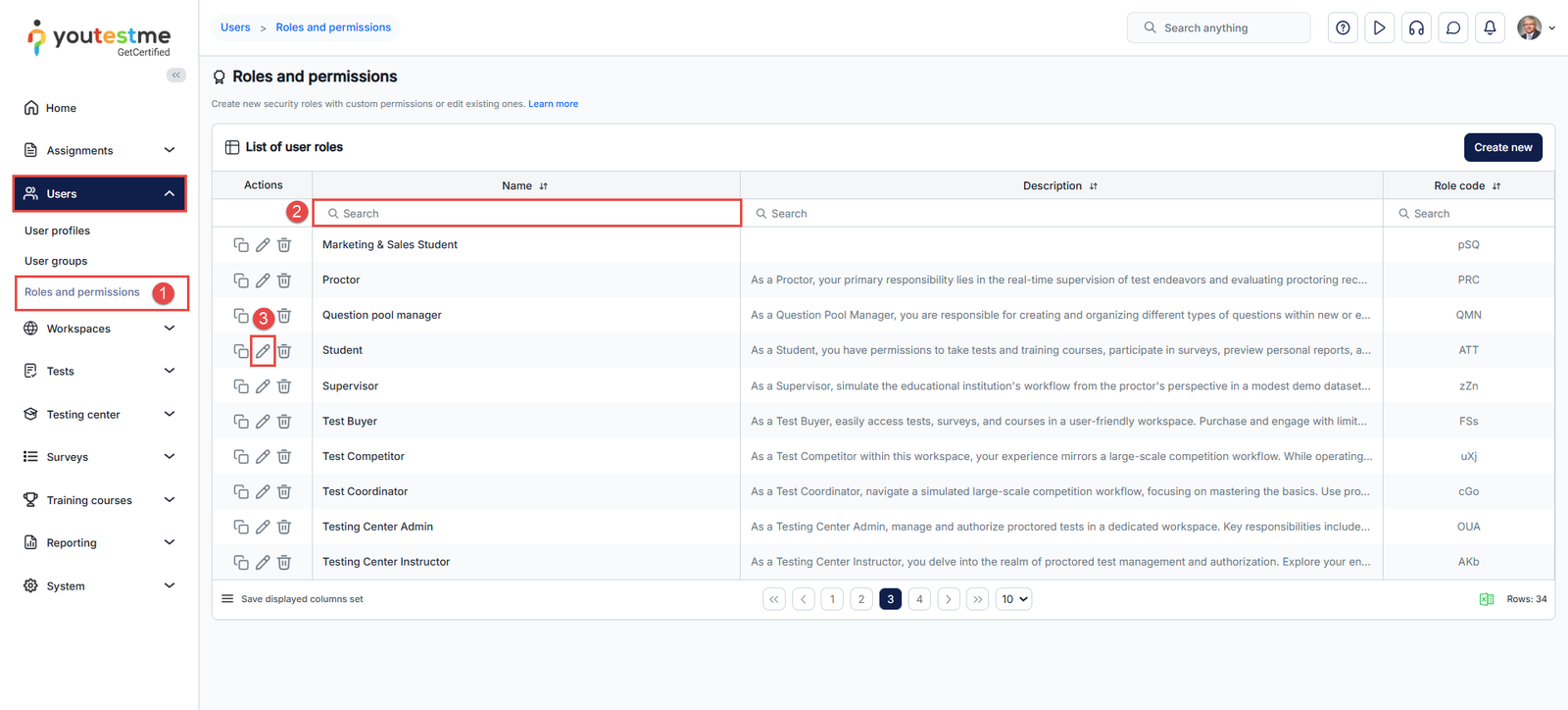 - Go to the Users module then access the Roles and permissions section.
