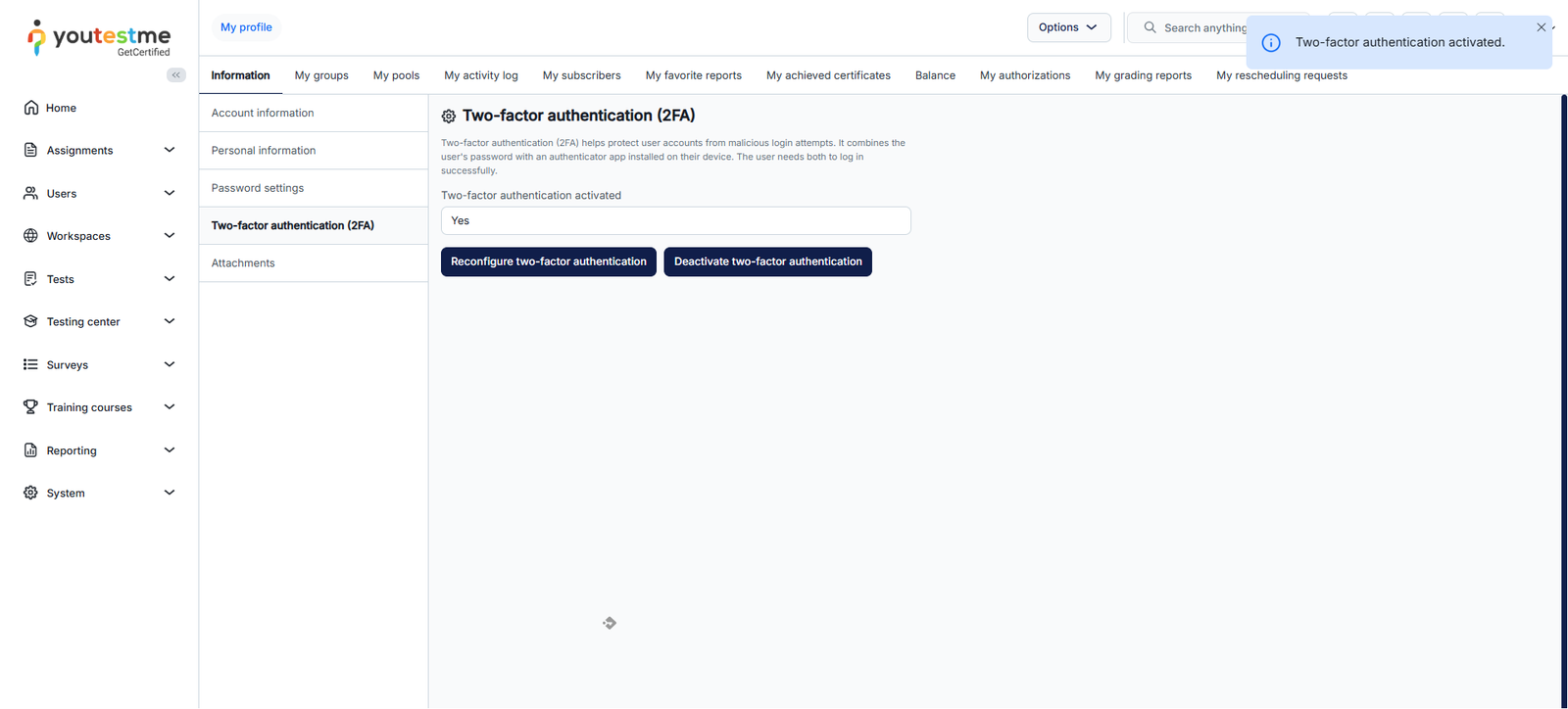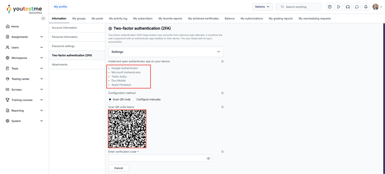 Two-factor authentication (2FA) is a crucial security measure that protects your account from malicious login attempts. In this article, we will briefly explain the fundamentals of 2FA and how it integrates with YouTestMe GetCertified.