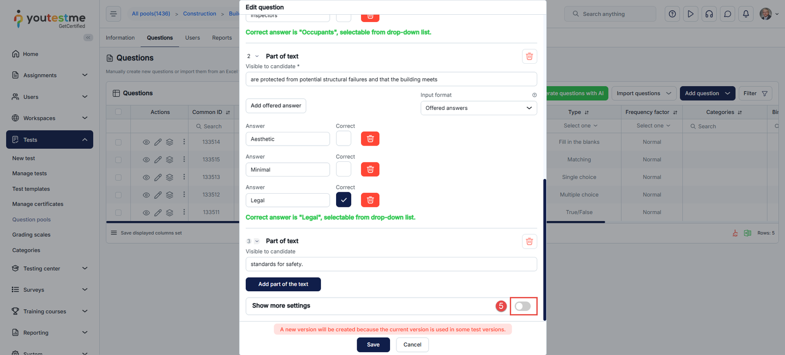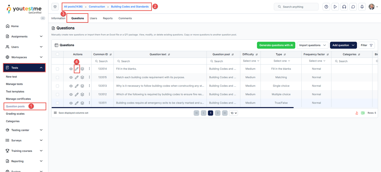 - Go to the Tests section in the left-side menu and click on the Question pools page.
