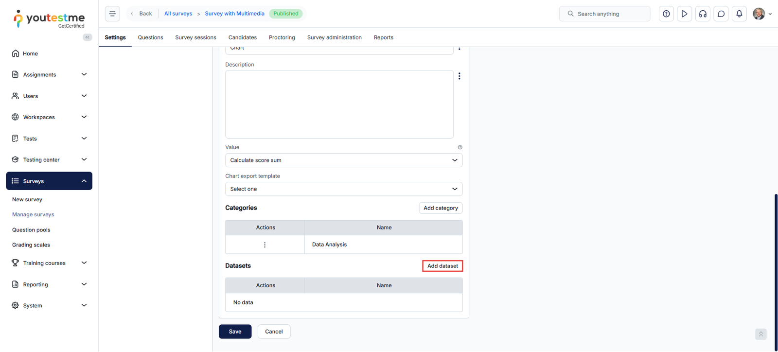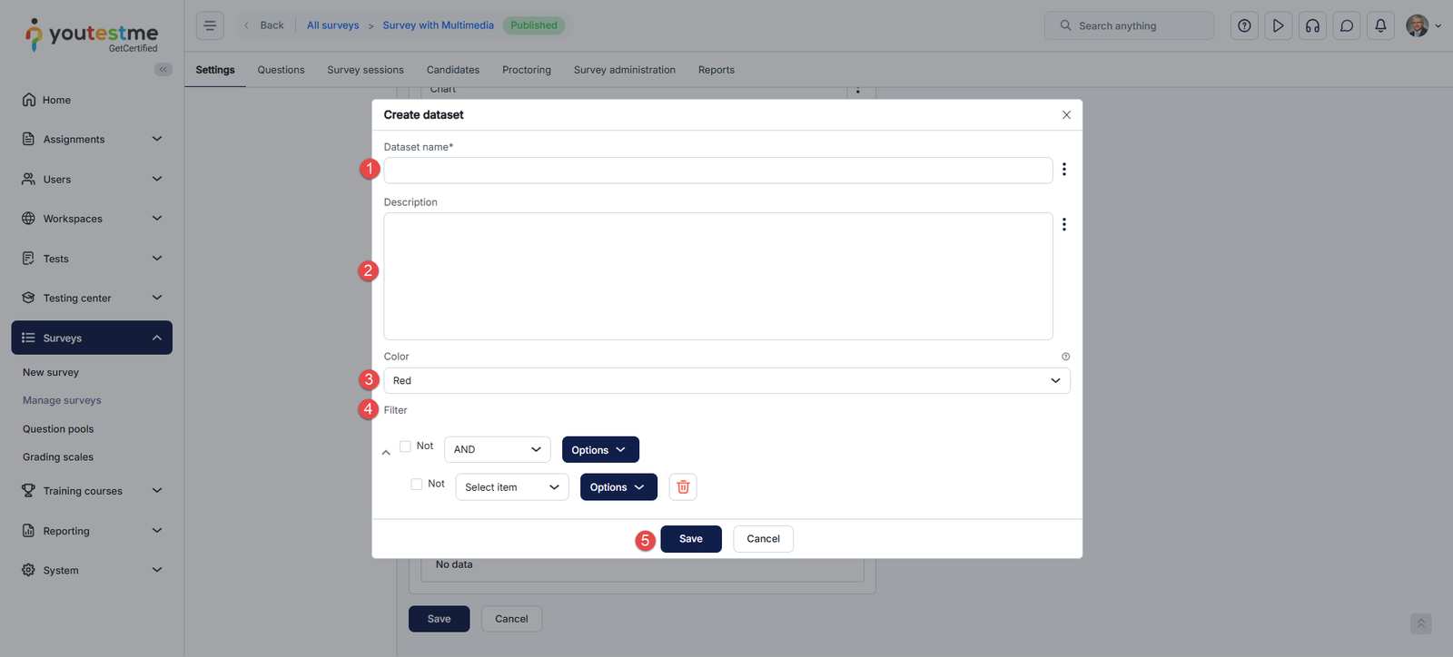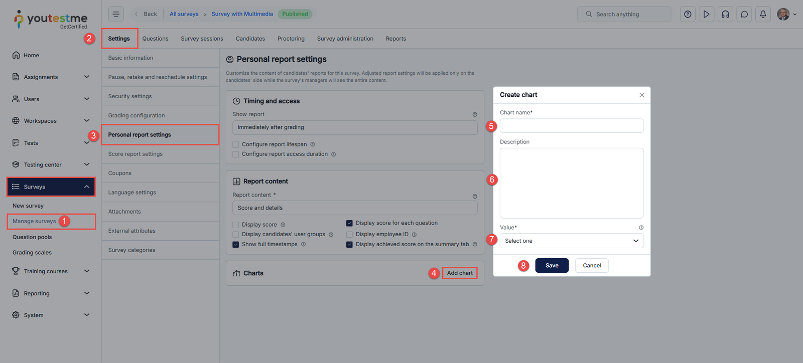 After you’ve labeled all the questions, the next step is to create a radar chart. To create the radar chart, you first need to create a survey/Test or use an existing one. For more instructions on creating a survey or a test, please refer to the following articles: