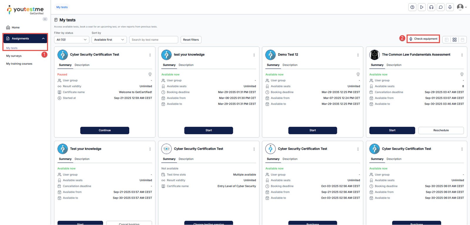 Once the equipment check is complete, you can return to the My Tests tab.
