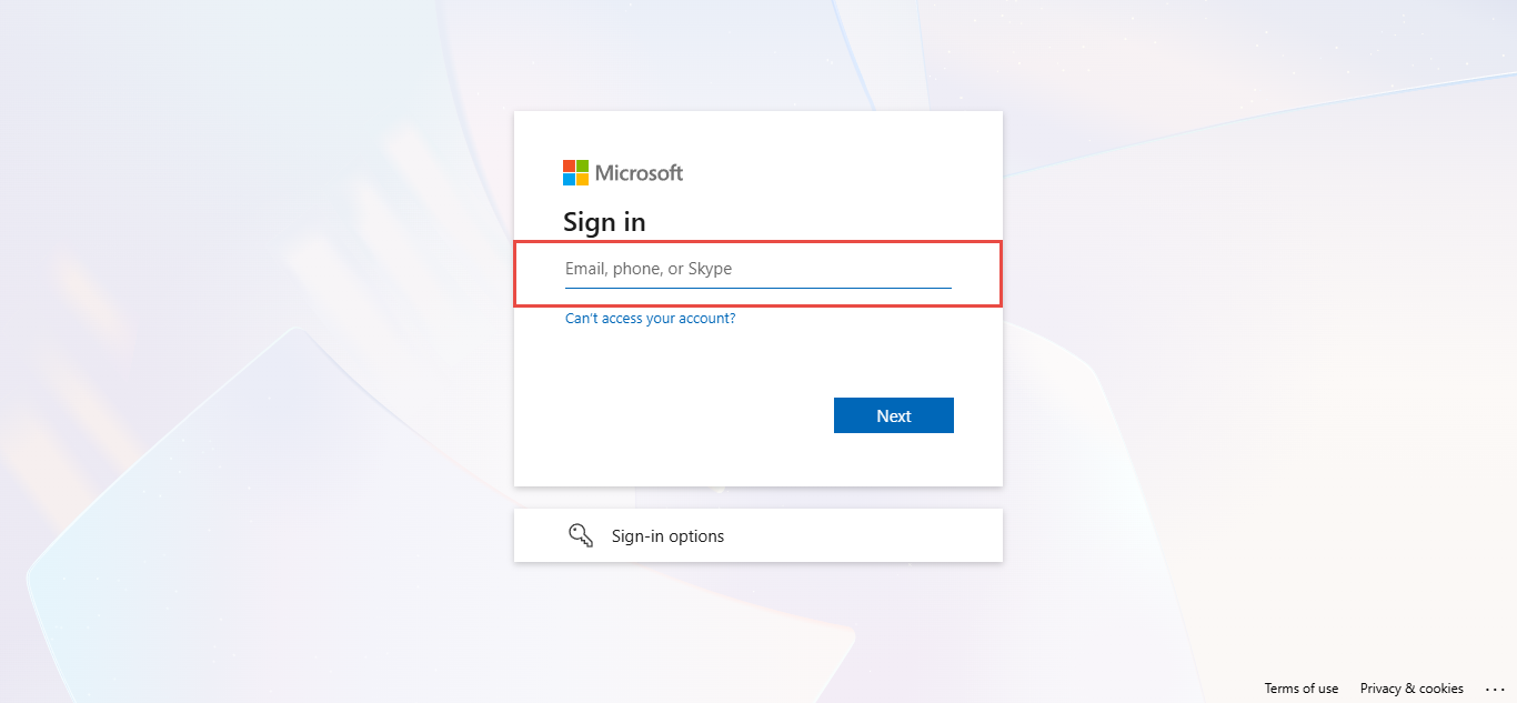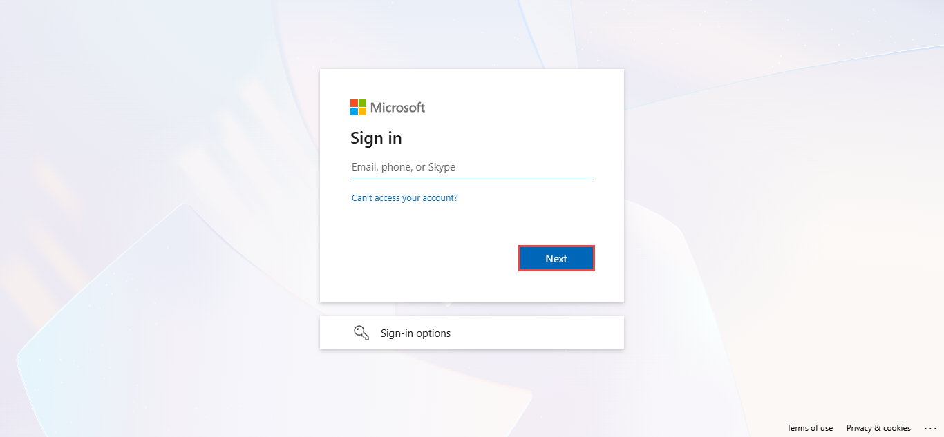 1. After navigating to the SSO link you will be redirected to a login page. Insert credentials for your account and click the Next button.