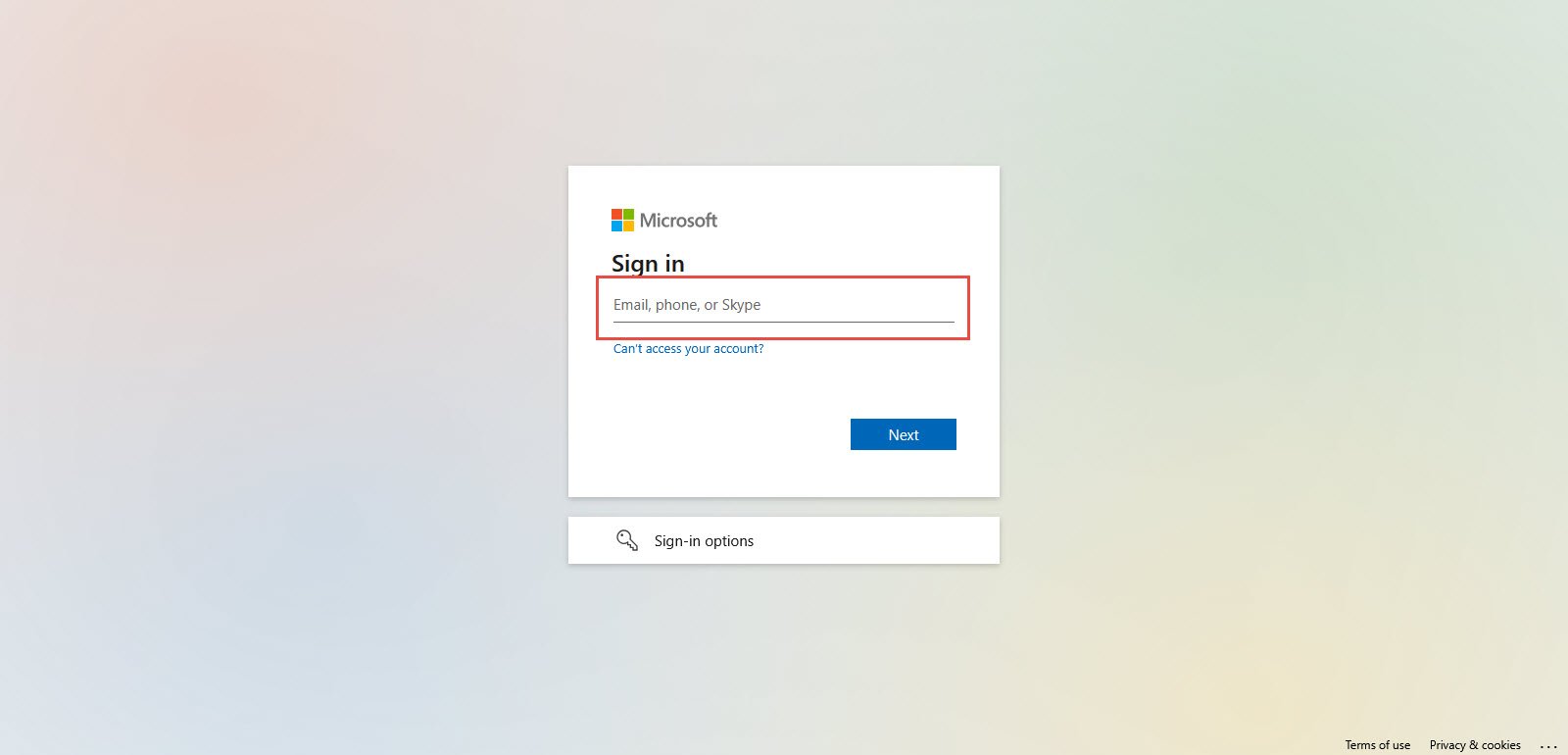 1. After navigating to the SSO link you will be redirected to a login page. Insert credentials for your account and click the Next button.