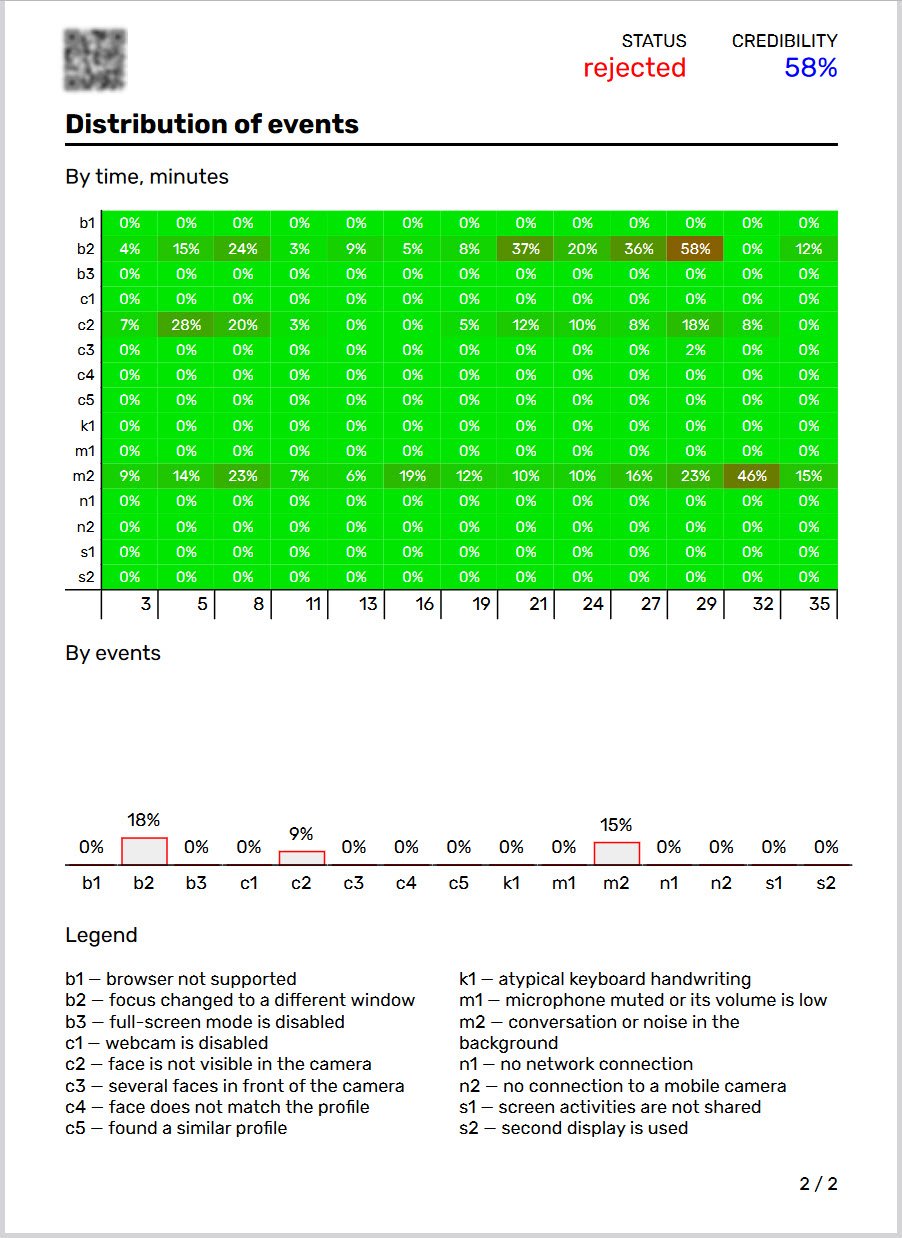 Finally, at the end of the report, there is an overall summary of the violations detected during the test-taking process.