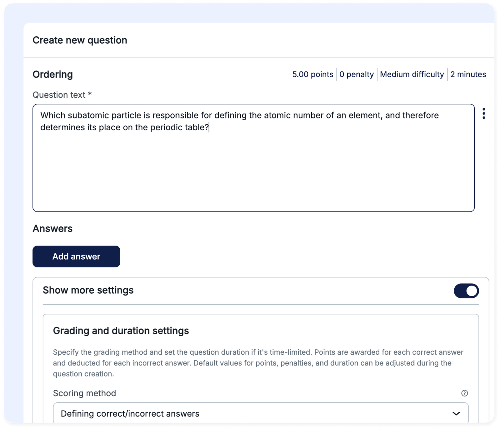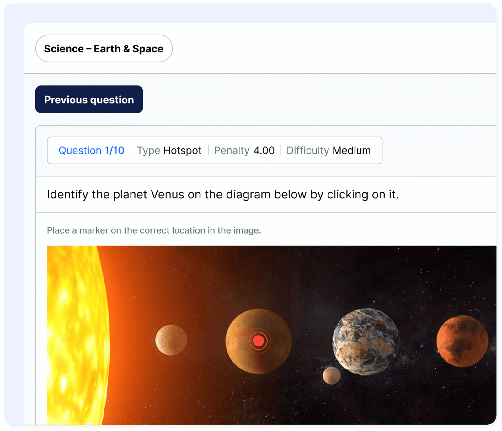 Set question difficulty (easy, medium, hard), whilst allowing candidates to provide question feedback, including the perceived difficulty level